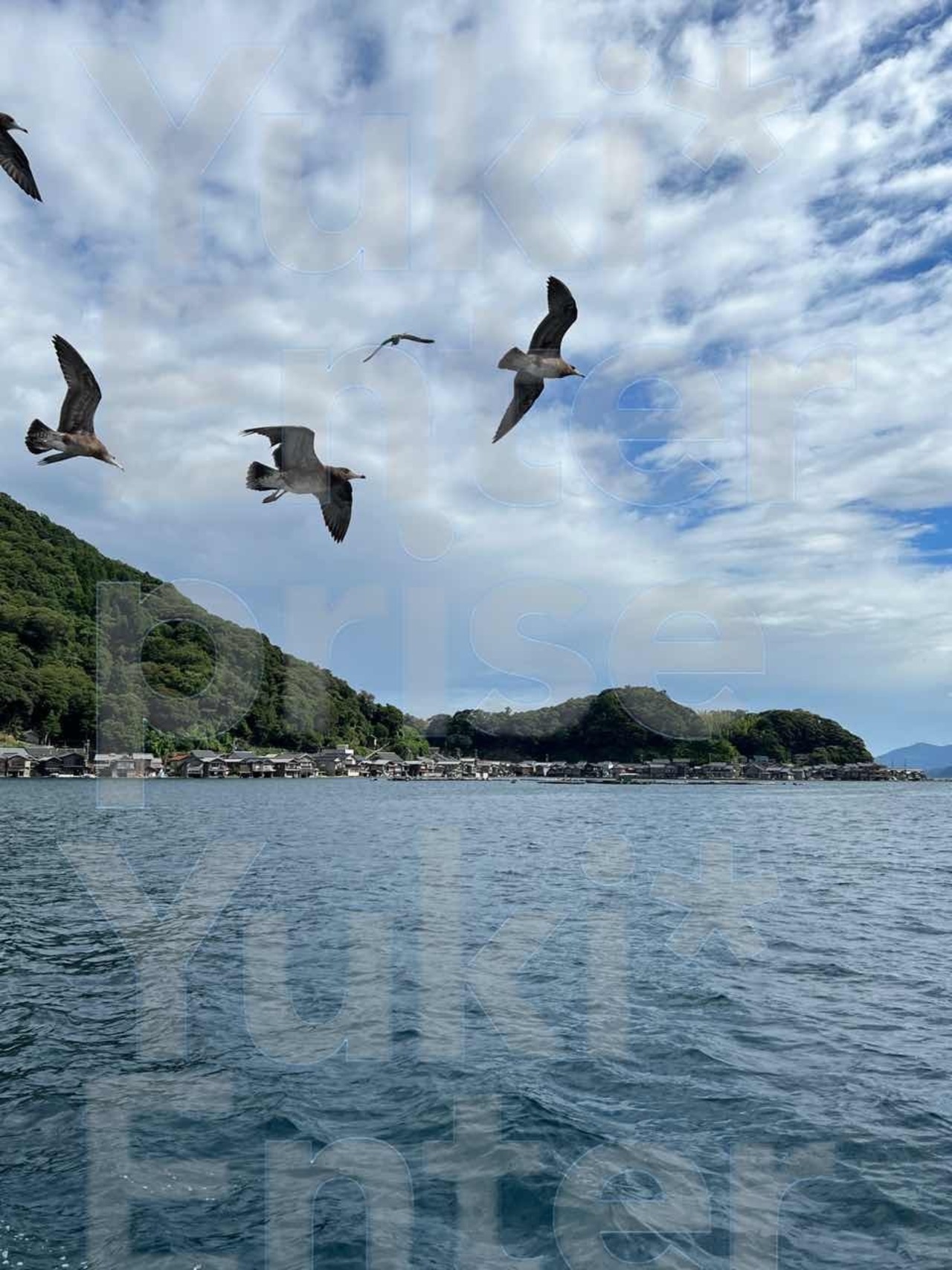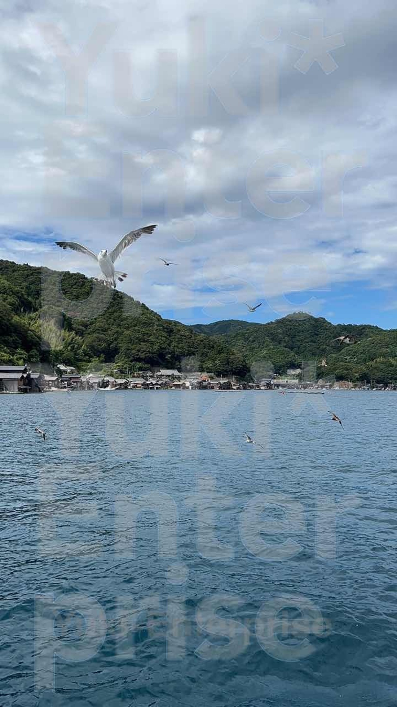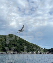 日本の風景フォト!現地に行かずに旅気分!ご挨拶状にも!画像は伊根の青い海とカモメたちです。