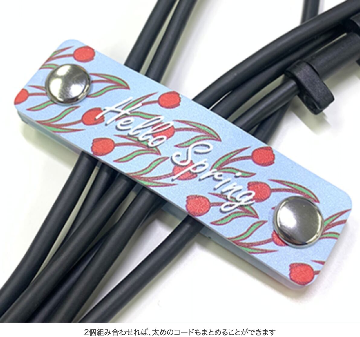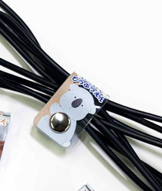 スナップボタンでパチンととめられて簡単!2つ組み合わせれば太めのコードもしっかりまとまります。